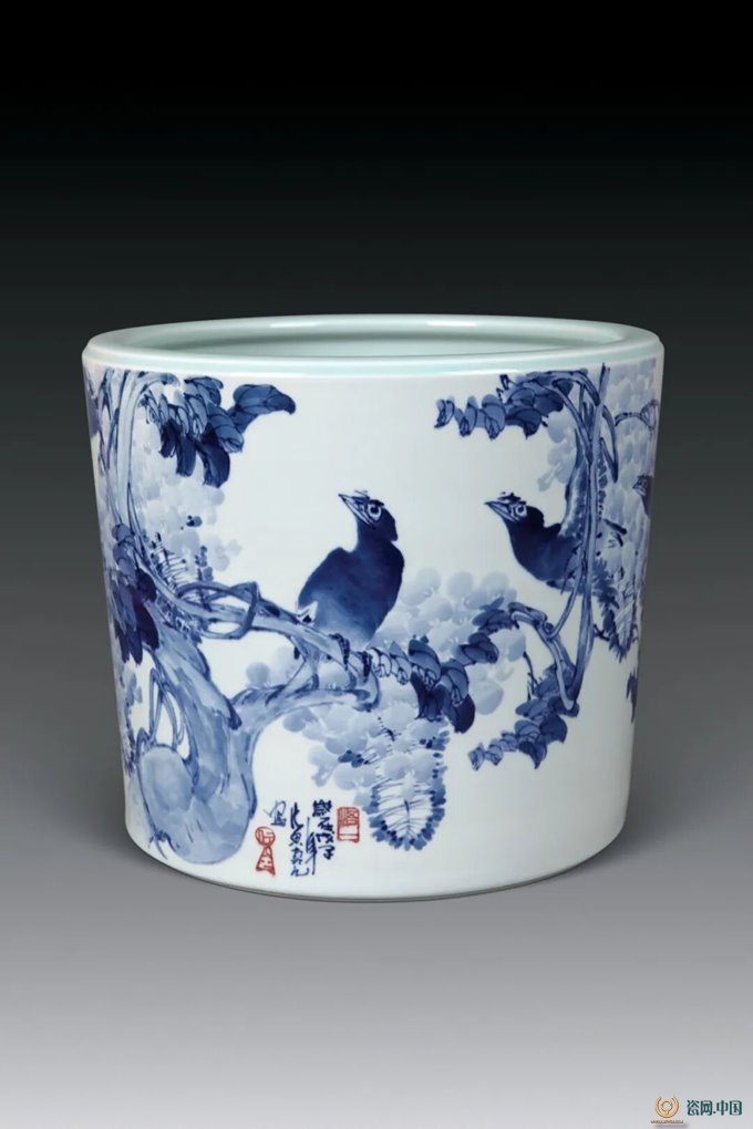 黄卖九大师技艺全面,功力深厚,擅长青花分水、青花斗彩、青花釉里红、粉彩、新彩及“半刀泥”刻花等多种陶瓷装饰技艺。他将中国画的笔墨意趣与陶瓷工艺深度融合,独创“黄卖九青花分水写意画法”,开创了当代青花绘画艺术的新流派,多件作品被人民大会堂、中国工艺美术馆等机构收藏。