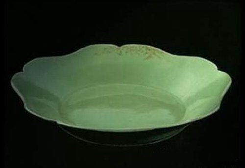 釉质细腻。“如冰似玉”是人们不断追求和向往的瓷器釉质,法门寺秘色瓷体现出的正是瓷器青釉的玉器质地。地宫出土的五瓣葵口小内凹底秘色瓷碟,通高4厘米,口径25.3厘米,底径14.5厘米,是13件秘色瓷中口径最大和器形最矮的器物。瓷器釉质如半透明的青玉,薄而莹润、细腻如脂、温润厚重、深沉含蓄,完美地再现了青瓷“冰肌玉骨”的艺术风格。