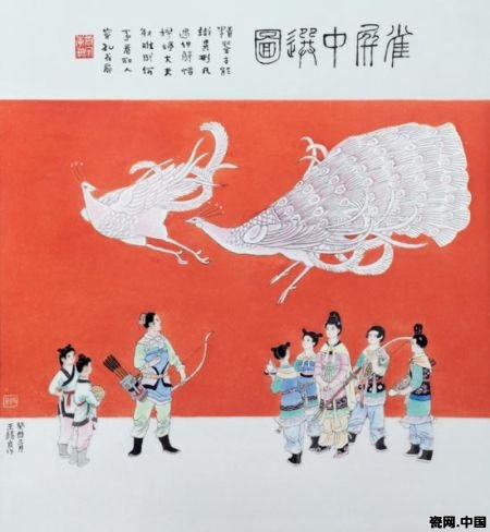 当代 王锡良 粉彩《雀屏中选》瓷板 1993年