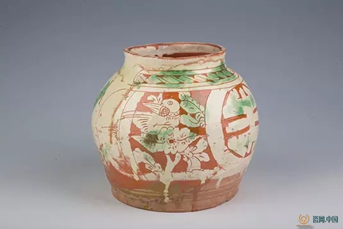 界首窑 窑址位于界首县颍河南岸、距县城8公里的陶庙区田营乡境内,方圆3公里内,有13个村庄以陶命名,即芦窑、魏窑、后魏窑、计窑、前计窑、朱窑、尹窑、高窑、盆张窑、田窑、沈张窑、韩窑、王窑,有“十三窑”之称。其中以芦窑、计窑、魏窑、朱窑声誉最大。界首窑以烧制彩陶而著称,而彩陶则以三彩剔花最富盛名,风格粗犷古朴。器物表面施以铜、铁元素为着色剂的低温铅釉,以黄、绿、白三彩为主,兼有酱釉、枣皮红釉、绿釉等单色釉。装饰多取材于民间喜闻乐见的植物花卉、飞禽游鱼、才子仕女、刀马人物等,题材广泛,线条刚柔相济,图案栩栩如生,具有浓厚的地方特色。界首窑始烧可上溯宋元时期,明清两代十分繁荣,直至民国时期产量仍然很大,涌现出芦之勤、芦山义、李布兰、唐志铁、朱怀信等制陶名家。