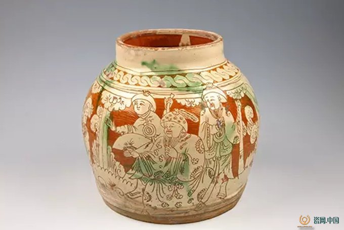 民国丙寅年小阳月(1924年10月)界首窑刻人物彩陶罐