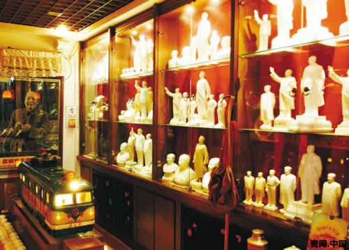 博物馆主李军今年40余岁,搞收藏已经有十几个年头了,所藏物品多数来自外地,大的分类有40-50种,小的类别则有几百种,至于为收藏物品所花款项已经难计算。如今,李军堪称红色收藏品领域里一位专家。目前馆内仅收藏毛主席瓷像就有7000多件。李军笑着说,“别看这些雕像的外形一样,但产地各有不同,这个只有我能看出来,你看这个是河北宣城的,那个是我们辽宁本地的。”