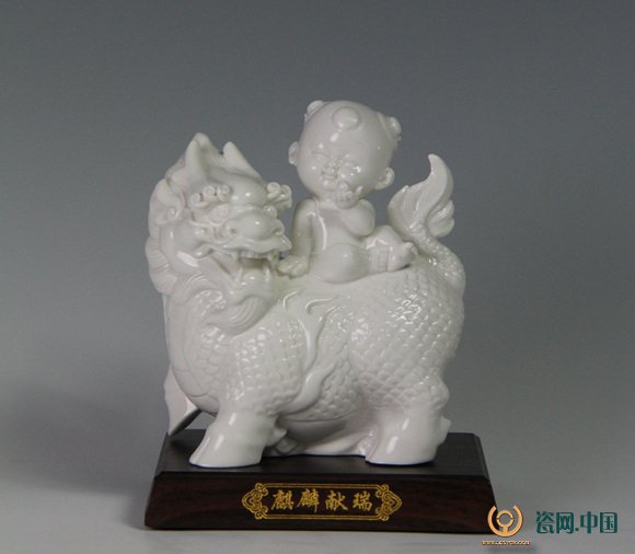 福建省陶瓷艺术大师陈戴茹作品《麒麟献瑞》现收藏于绿宝石艺术陶瓷馆