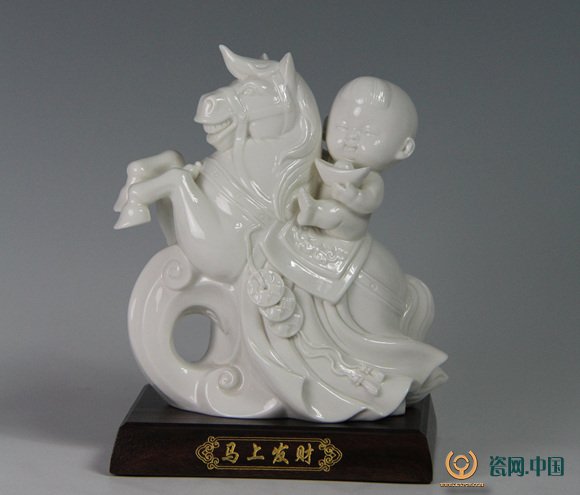 福建省陶瓷艺术大师陈戴茹作品《马上发财》现收藏于绿宝石艺术陶瓷馆