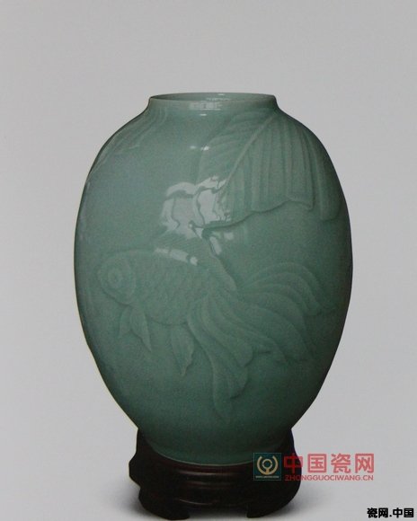 图3、2006年设计制作的粉青蕉叶金鱼瓶