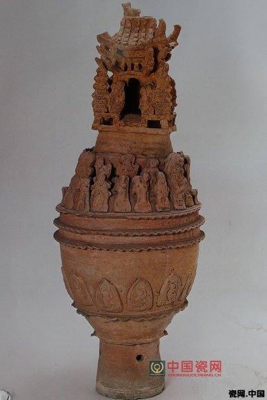 2.酱黄釉高身陶坛·局部 唐 通高73.0cm 口径8.cm 广州市石湾窑出土 广东省博物馆