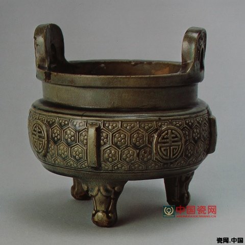 104.绿釉寿字双耳三足炉 清 高12.3cm 口径10.1cm 广东省博物馆