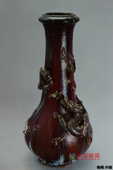 155.双龙瓶·两面 现代 高63.0cm 口径11.0cm 广东省石湾陶瓷研究所