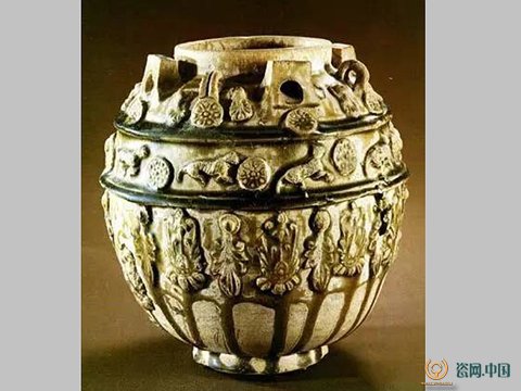 1973年安徽省合肥市明陈闻墓出土,为龙泉窑的精品。此器虽出土于明代墓葬,但其形制、纹饰和釉色,都具元代瓷器的特征。