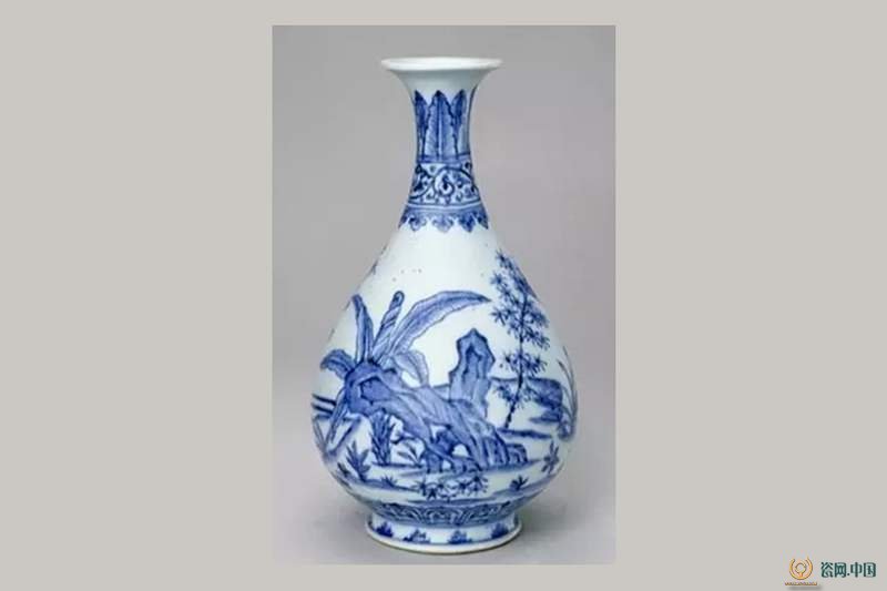 此瓶造型线条优美流畅,胎质纯净细腻,纹饰清晰生动。画面一改元青花繁缛的装饰风格,构图疏朗有致,青花色泽浓艳亮丽,深浅不一,富于层次感和立体感。