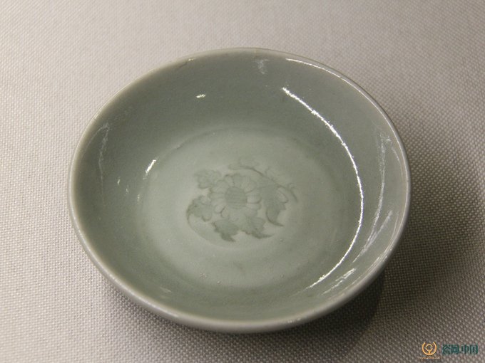 龙泉窑青釉折枝花纹敛口小蝶 高安博物馆藏
