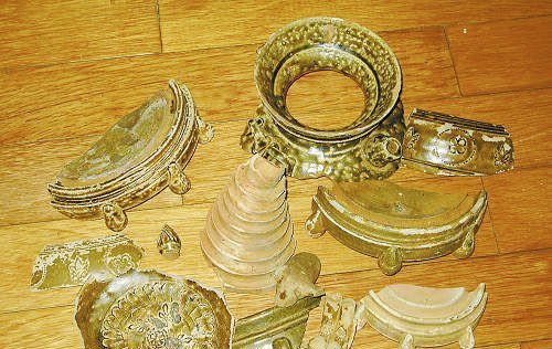 潘宁捡回家的有隋唐特点的青瓷残件及碎片