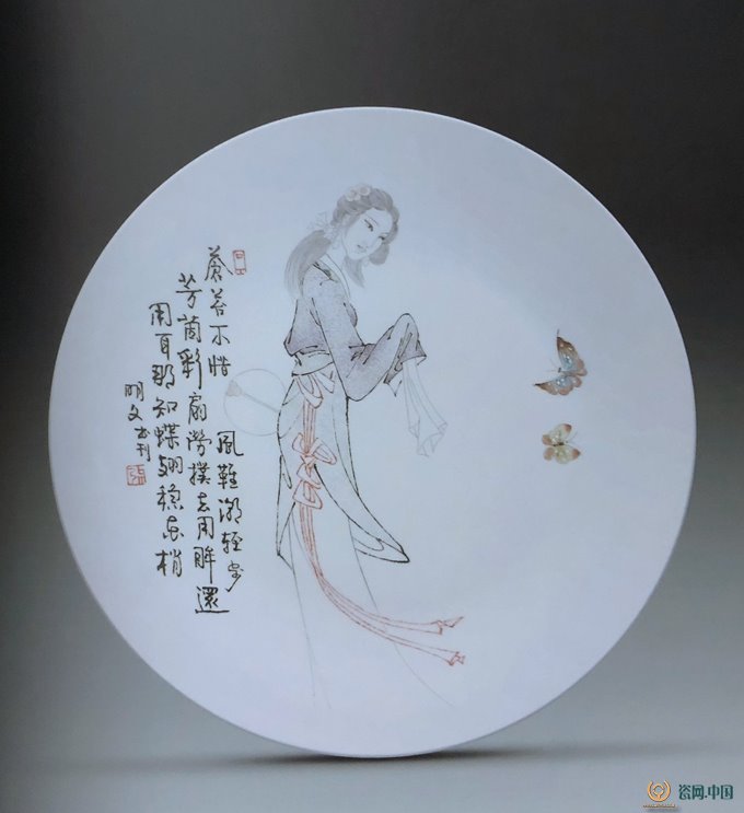 宝钗戏碟:苍苔不惜凤鞋潮,轻步芳茵彩扇劳。扑去用目还用耳,但见碟翅稳花梢。