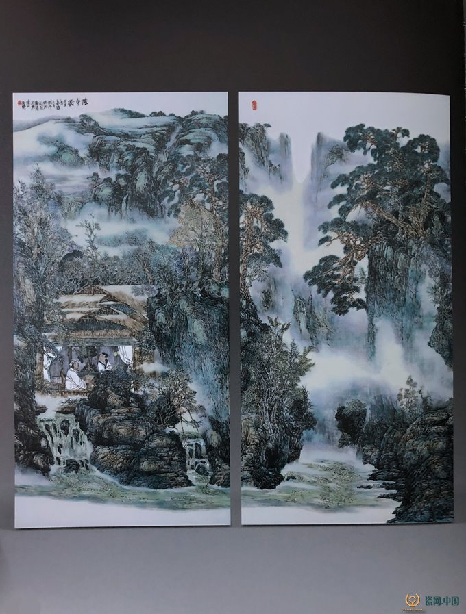 粉彩瓷板《隆中对》高110厘米 宽228厘米 2009年