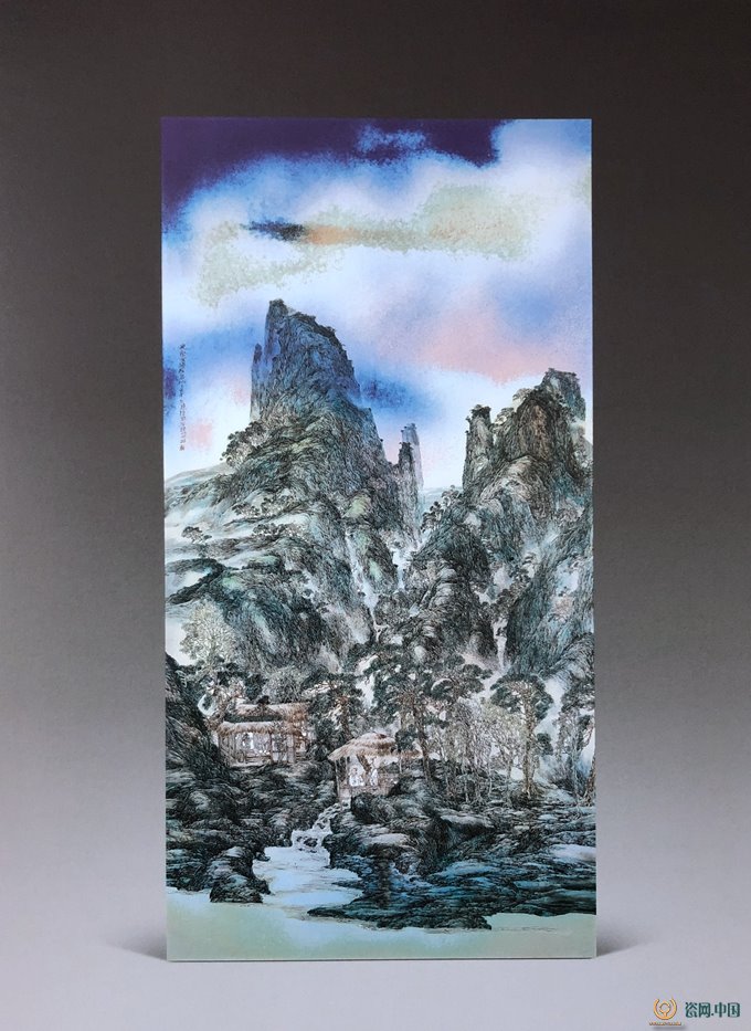 色釉粉彩瓷板《雪静松野》高200厘米 宽100厘米 2017年作
