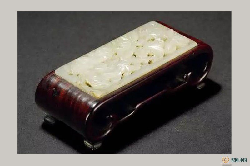墨床为在研墨时稍事停歇,磨墨处湿润,以供临时搁墨之物,文房用具之一。多为木、玉、瓷所制,形状或为床式,或为几案式。其产生的具体年代不可考,文献亦鲜有记载。目前所见最早的为明代器物。白玉墨床,几案形,线条劲挺,棱角分明,通体不加任何雕饰,明代朴素浑厚之风极为明显。明代墨床除玉质外,还有木嵌玉墨床,但传世品极为少见。