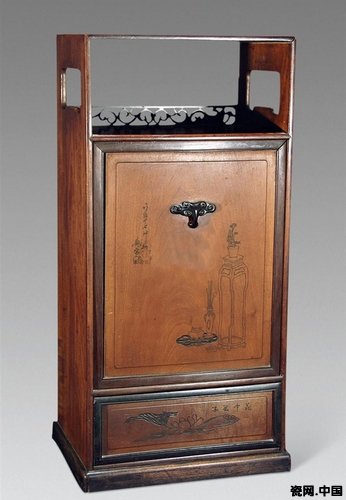 茶棚是茶道中盛放茶具的小架,此方形茶棚取湘妃竹节榫卯穿插成器。结构合理,竹材顶端皆以红木封塞,十分精致。板面黑漆髹制,光滑明亮。湘妃竹又名斑竹,是禾本科竹亚科刚竹属植物桂竹的变型,竹竿布满褐色的云纹紫斑,产於湖南、河南、江西、浙江等地。茶棚制作通透灵巧,实属茶道雅玩之实用佳器。