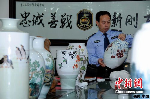 根据洪某交代,警方立即兵分两路全力追缴,先后多次前往北京等地逐一追缴被骗作品,并在景德镇市陶瓷城、陶瓷大世界等地将洪某存放在他人陶瓷店内出售的作品追回。