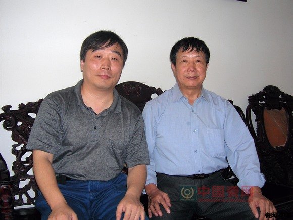 2006年10月,瓷网、绿宝石玉瓷网朱东明总经理与中国工艺美术大师苏清河在大师家中合影。