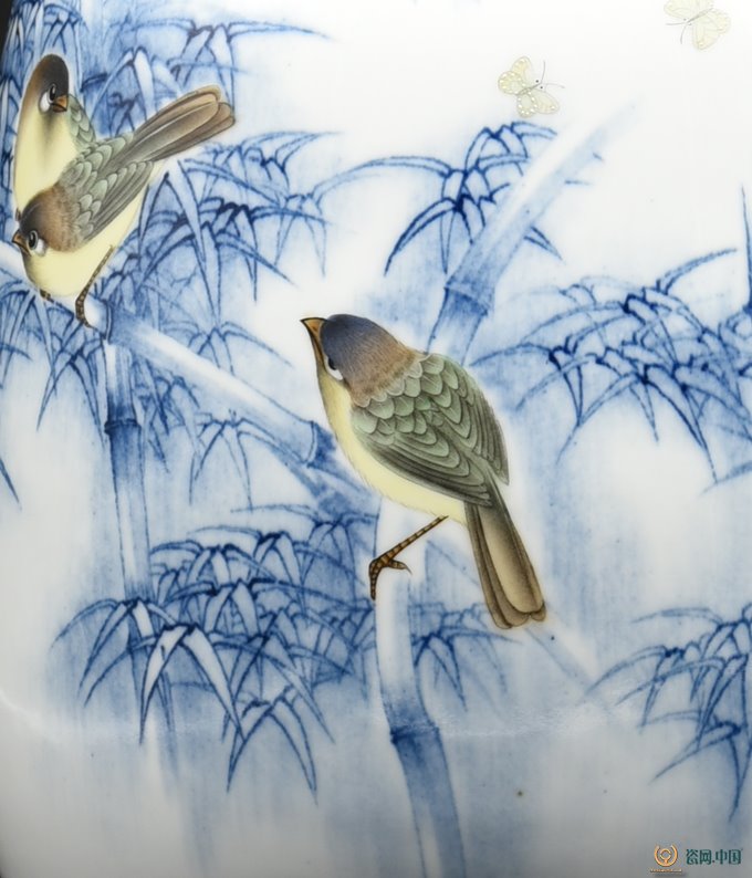 工艺美术大师熊婕作品《青花斗彩春江异形瓶》