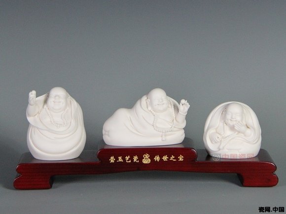 白瓷雕塑《三件布袋弥勒》 馆藏编号:ZP046产地:福建德化 作者:苏清河 中国工艺美术大师
